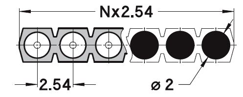 SMD pin connector 2.54 mm, low profile, single row, perpendicular mount with self-levelling floating contacts - Connecting pin Ø 0.47 mm