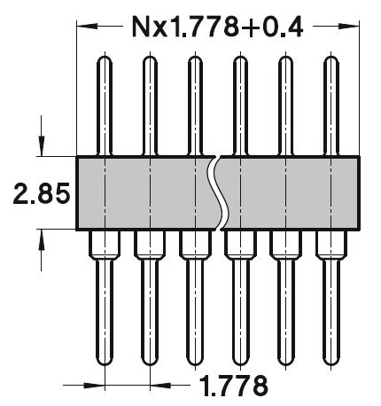 Straight pin connector, single row, grid spacing 1.778 mm