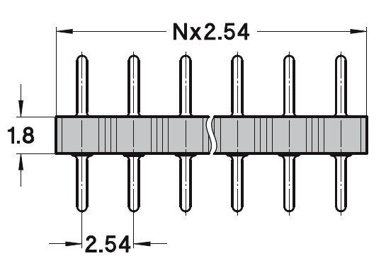 Straight pin connector 2.54 mm, ultralow profile, height 1.9 mm, solder tail, single row